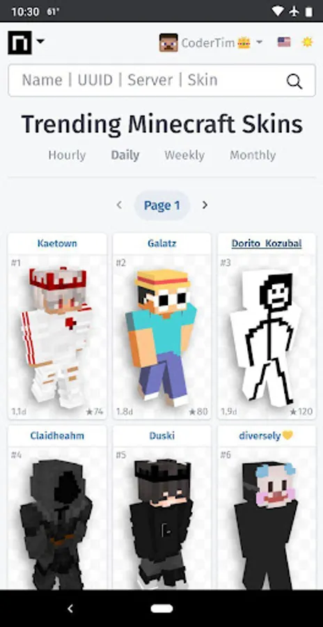 NameMC has one of the largest collections of Minecraft skins in existence. With over 2 million skins to choose from, you're sure to find the one you want. Our list of the most popular trending skins updates every week.
