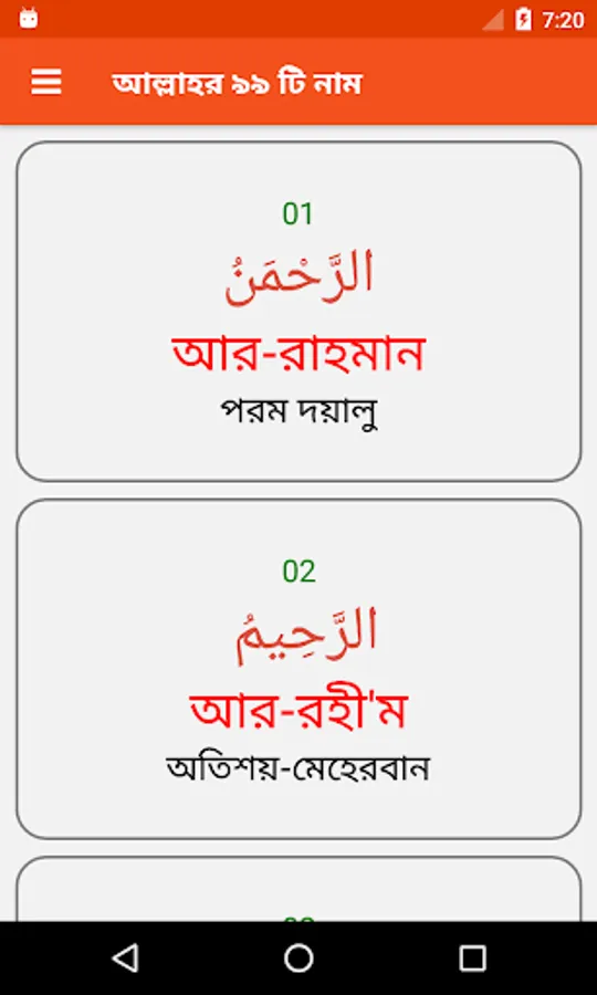 This is an Islamic android apk designed and coded for Islamic purposes. This app containing 99 name of God (Allah). You can memorize easily because our app designed on beautiful UI. This app contains Arabic and Bangla language only. Meaning of the name available in Bangla and Arabic.