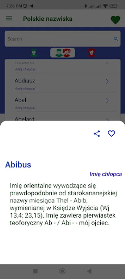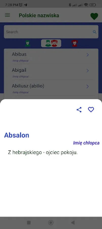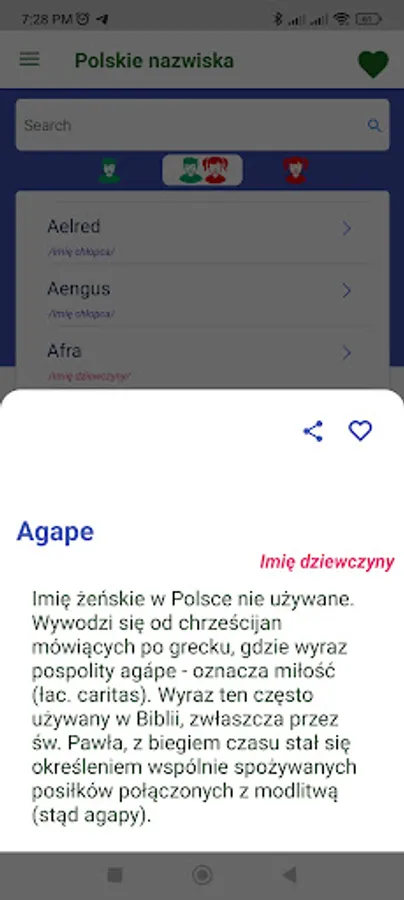 "The Meaning of Polish Names" is an Android application that aims to help users understand the meaning and origin of Polish names. The app features an extensive name database, including their meanings and origins, as well as the gender associated with each name. Users can search for specific names or browse the database to find new ones.