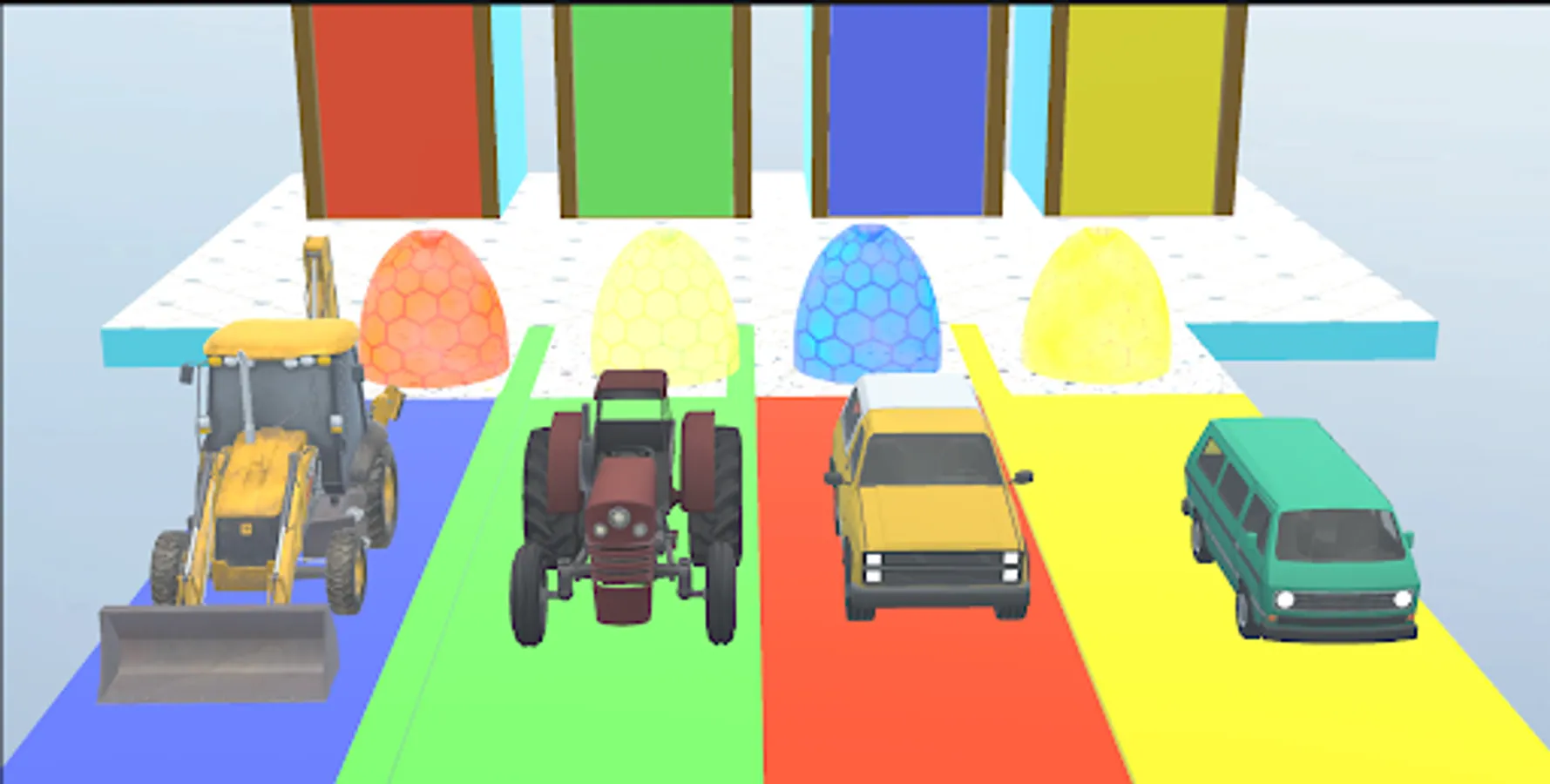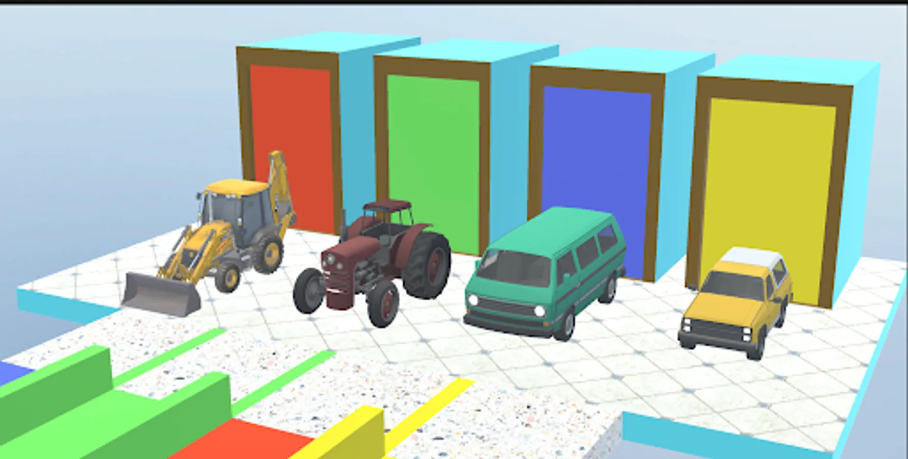 Welcome to choose the right door challenge with vehicles. You can control car, tractor,jcb and bus for this challenge. Drive the vehicle and go for correct door in order to pass the game.