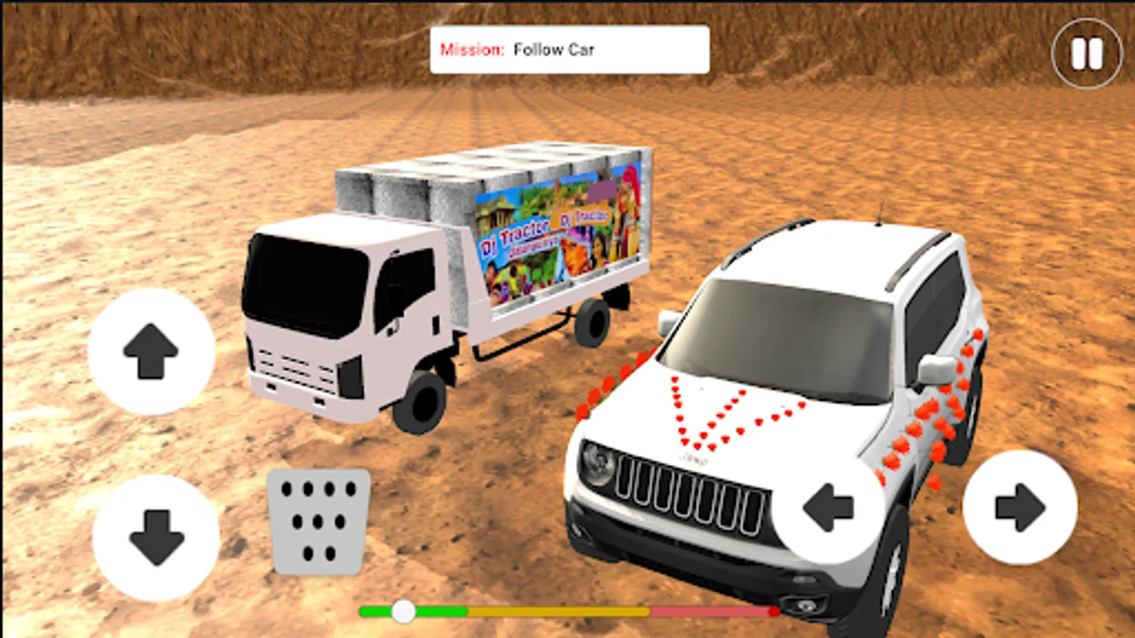There is a Dulha car which is going to wedding ceremony. You have to drive Dj pickup and follow that car. Do not let the Dulha car go away from you. Keep the distance between both cars low. You can find the distance between cars at bottom of screen. There is a bar which will show you the distance. Green bar means Dj Pickup is at safe distance. Light Red color means You must fast your car. Dark red color means it is too late. Now the game will be over.