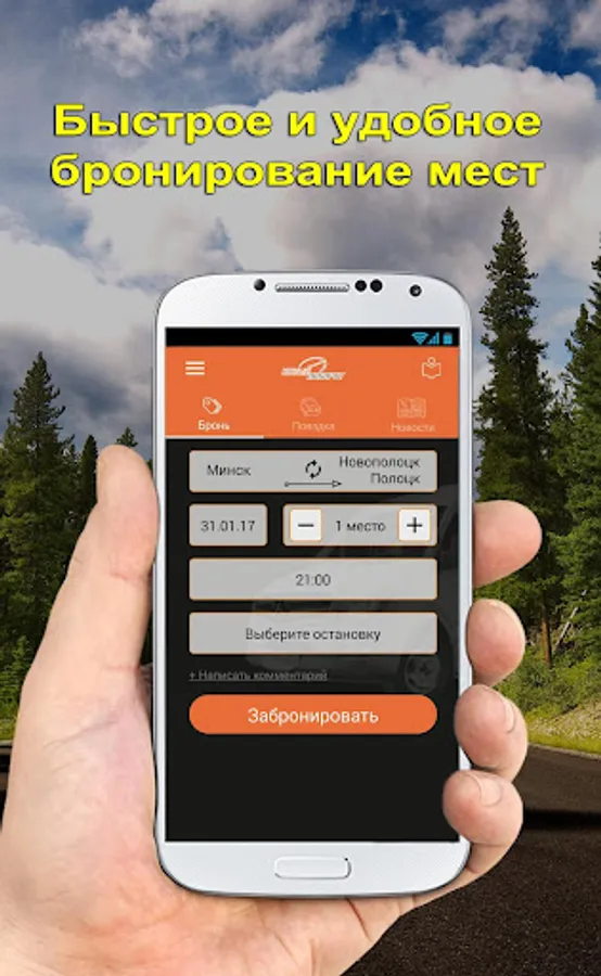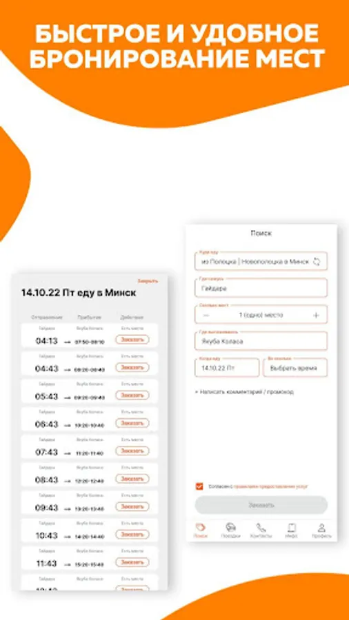 This application is designed for quick and easy booking of seats on the Novopolotsk Polotsk Minsk or Minsk Polotsk Novopolotsk minibus
