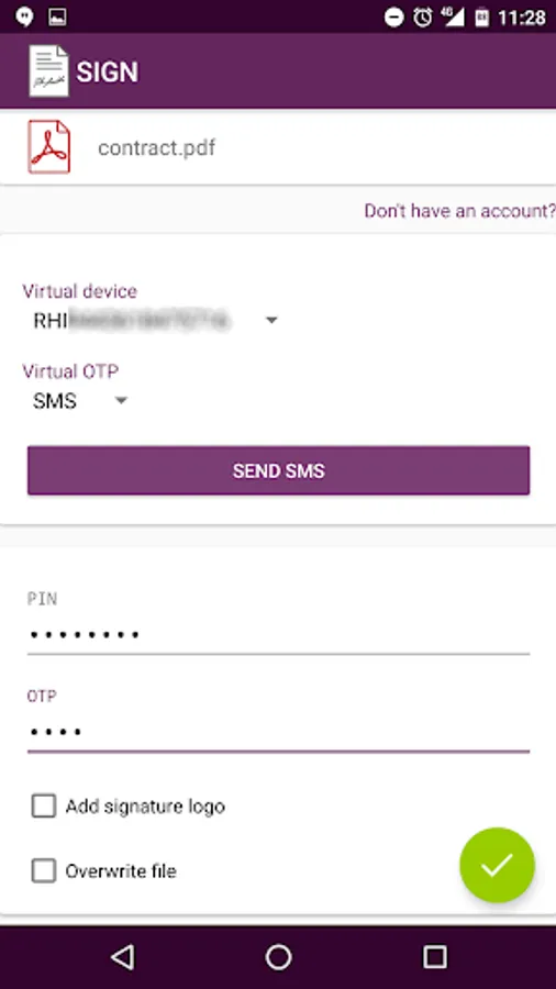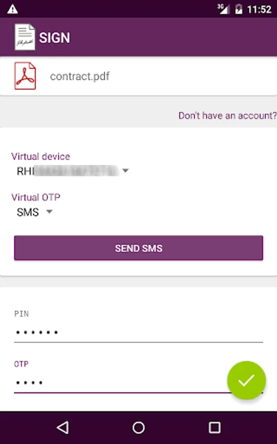 In case of digital signature you will need also to provide a "One Time Password" (OTP) that will expire as soon as you have used it.