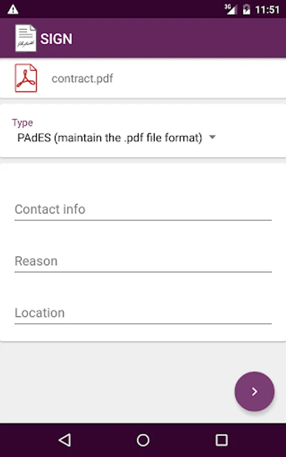 With App Digital Sign you can simply list all the files on your device, select an action (Sign or Timestamp), insert your credentials and complete the operation desired.