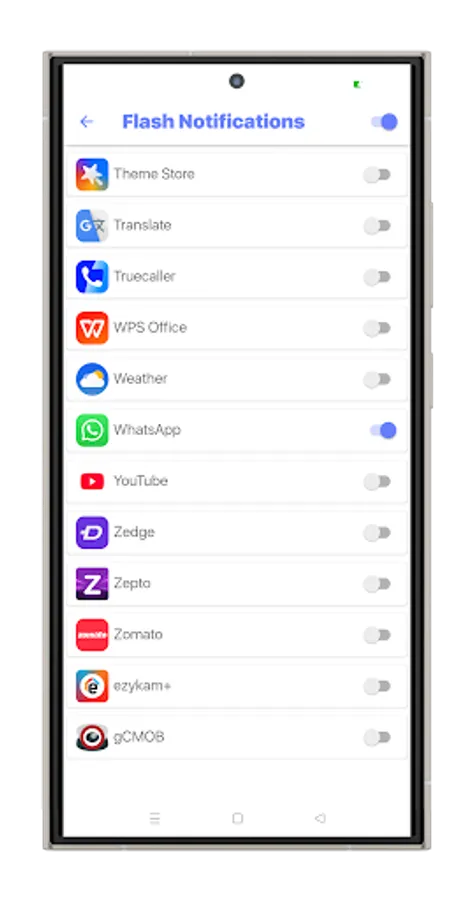 - Blink led flash alerts on Call, ringing flashlight
