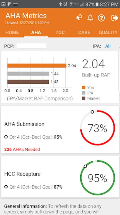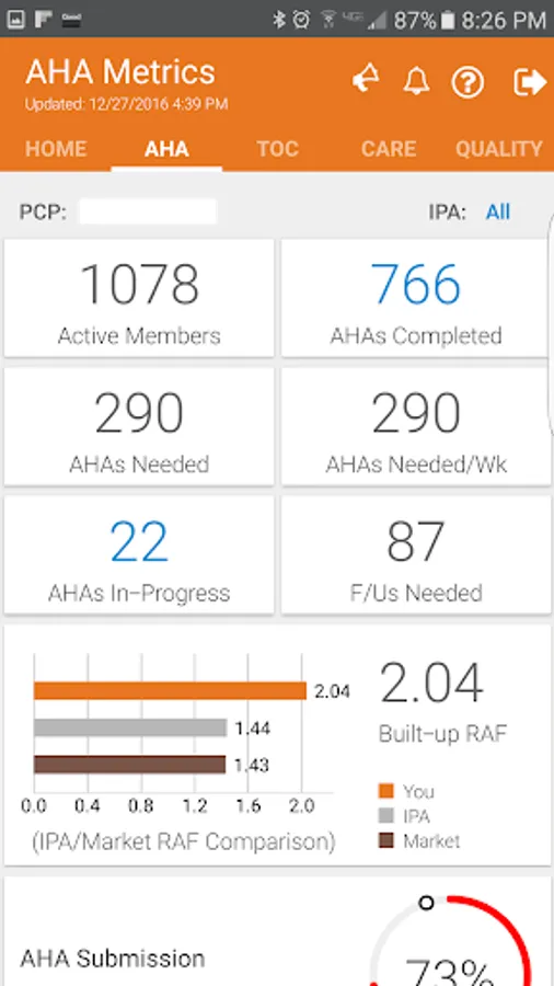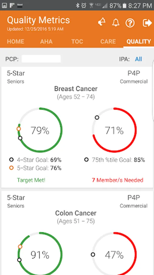 Krypton is an application that provides NAMM physicians key metrics and stats on AHA, TOC, Care and Quality measures. Physicians are able to monitor their overall performance in these key areas, and are able to improve patient care.