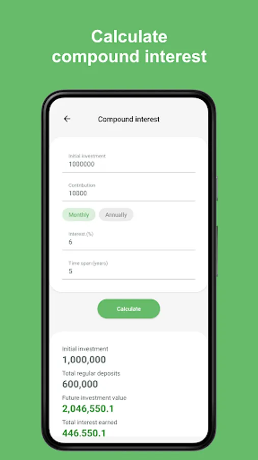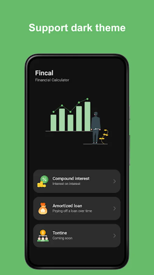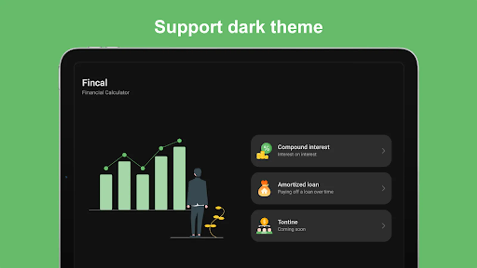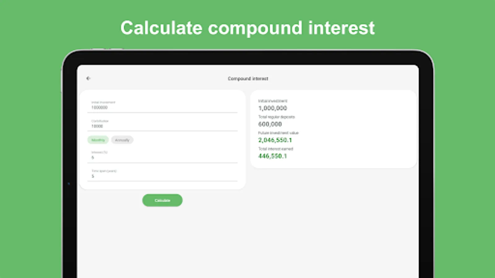 Fincal is a financial calculator which helps you calculate future value of your investment using compound interest and shows how much money you pay in principal and interest over time with amortization schedule.