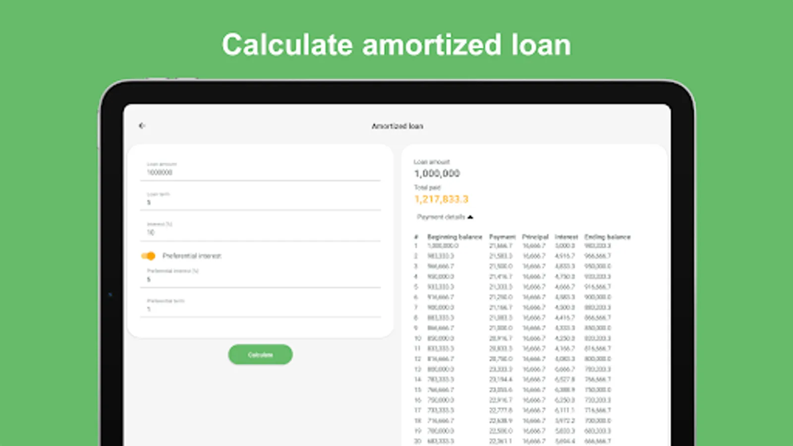 - Calculate how much money you pay in principal and interest over time of an amortized loan and see how those payments break down over your loan term.