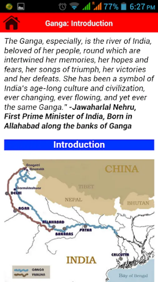 5. About Ganga: Application provides detailed knowledge about significance of River Ganga in real life, Spiritual and Cultural Heritage, Natural Benefits and Ganga Maps for general Awareness.