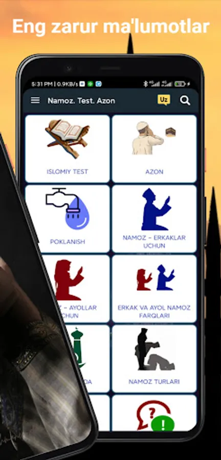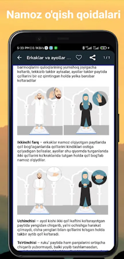 Ushbu ilova namoz o'qishni endi boshlayotganlar uchun eng zarur bilimlarni o'zida to'plagan.