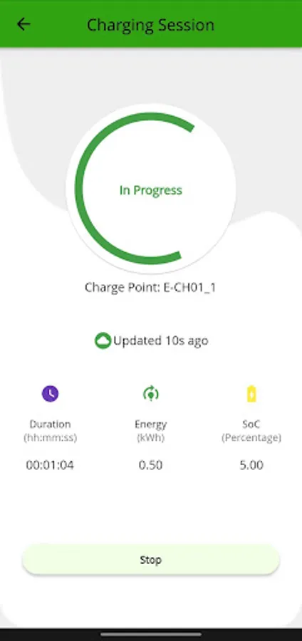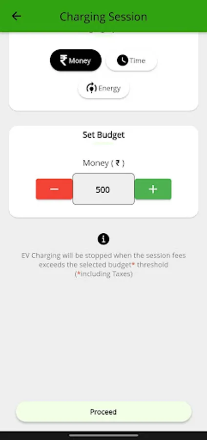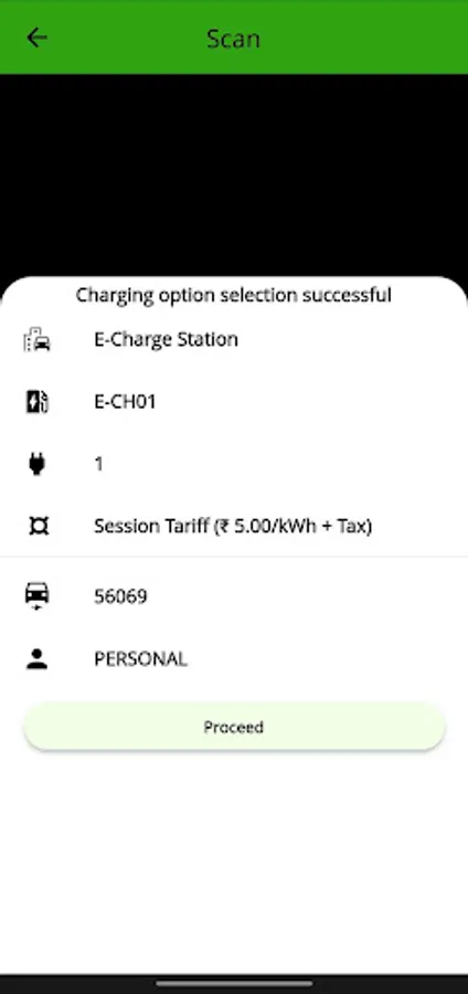 . Simple scan action, select type of charging (Time/Energy) and proceed.