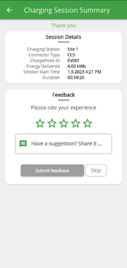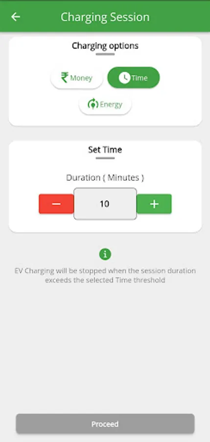 . Simple scan action, select type of charging (Time/Energy) and proceed.