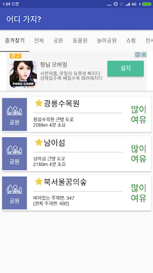 It is an app that shows the complexity of shopping places and outings in suburbs of Seoul.