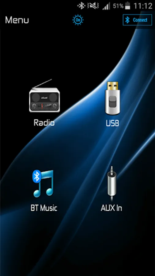 It can select from 4 different sources; Radio mode, USB mode, Bluetooth music mode and AUX mode via Bluetooth control.