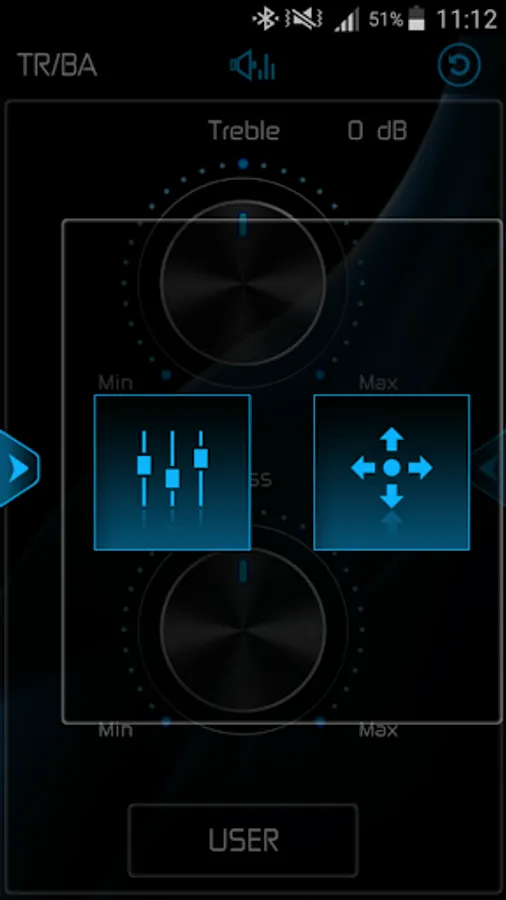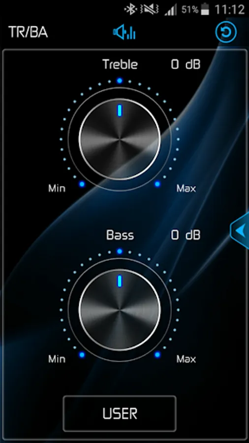 The app also features audio control such as treble/bass/volume level control of the connected radio.