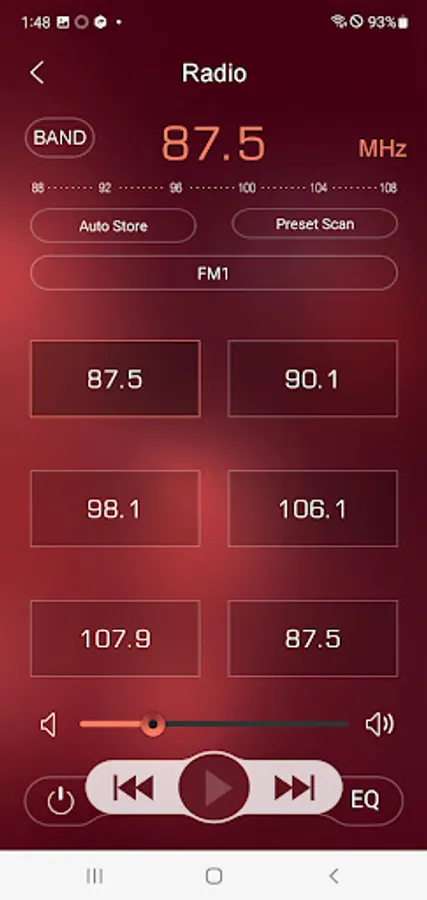 • Radio mode – Bands (FM1, FM2, FM3, AM1, and AM2), Seek, Preset Scan, Auto Store,