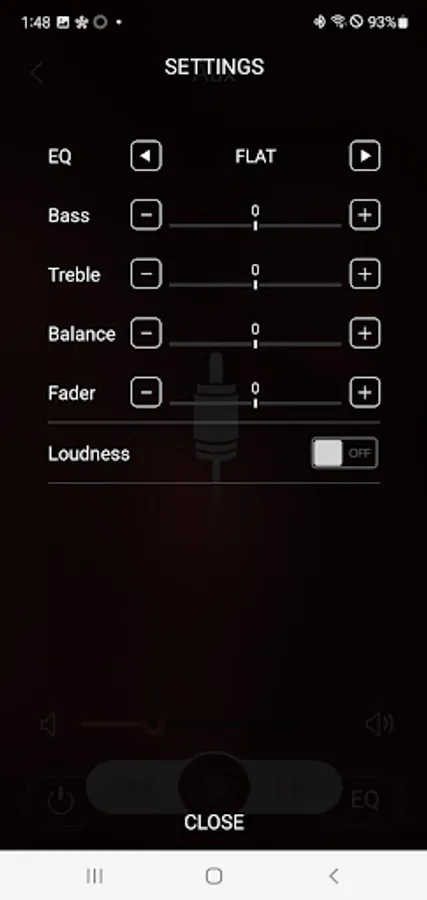 • Audio settings – EQ Presets, Bass, Treble, Balance, Loudness and Mute