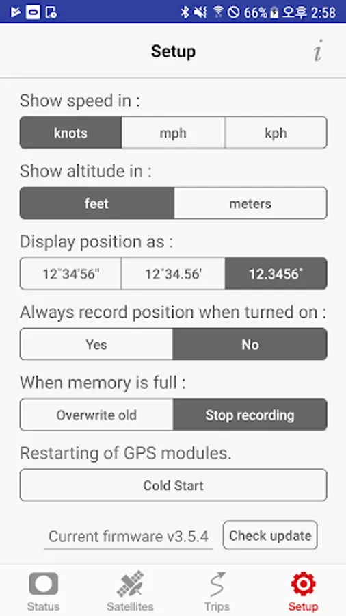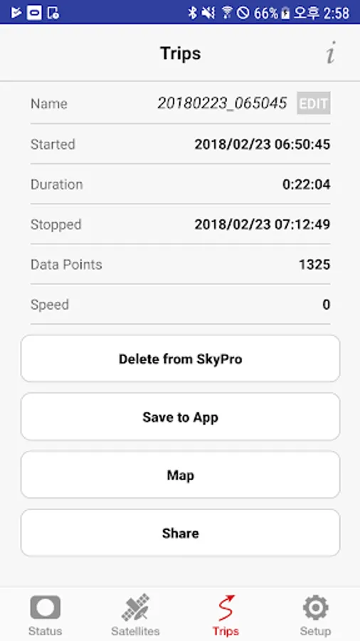 This app will also allow you to turn on/off automatic route recording, export the recorded routes stored in the internal memory of SkyPro GPS Receiver, and save the recorded routes from the receiver into the app.