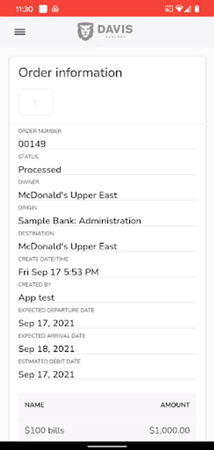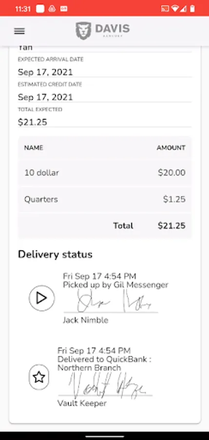 The Davis BancorpⓇ app is an app that lets you see the full picture of your cash in one simple place. Place change orders and track deposits made from your phone or tablet. You can see the entire service history by location and proof of delivery of your deposits to the bank itself. Take control of your cash!