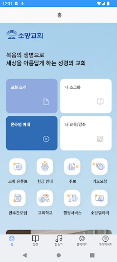 -Communication: Church news, alumni news, administrative service, inquiries, data room, bulletin, construction bidding