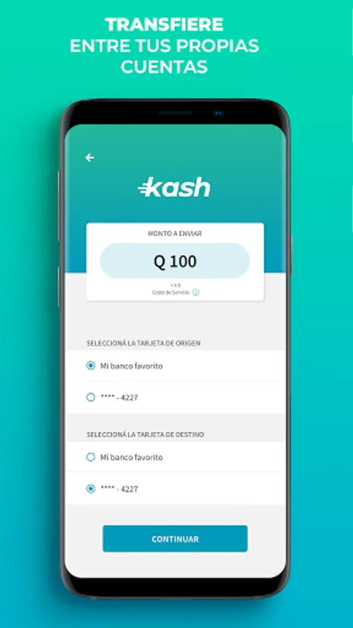Make your transfers between other Kash users in the same country. Costa Rica, Guatemala, Honduras! Now you can transfer without complications!
