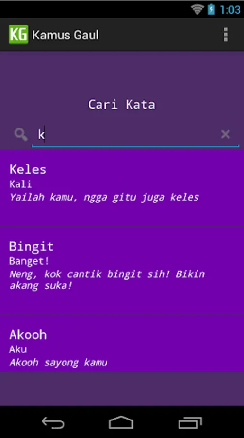 If you feel clueless or kudet or less with the times and lack of understanding of slang, do not worry because now there is an app that specifically discusses the language and slang words that Gaul Cool Dictionary for Android.