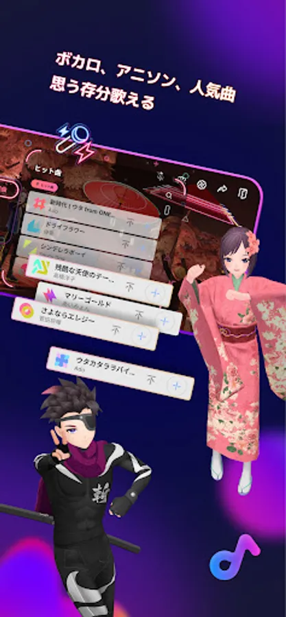 ・Use voice chat, emoji, and motion to make the singing experience more exciting and fun than real life!