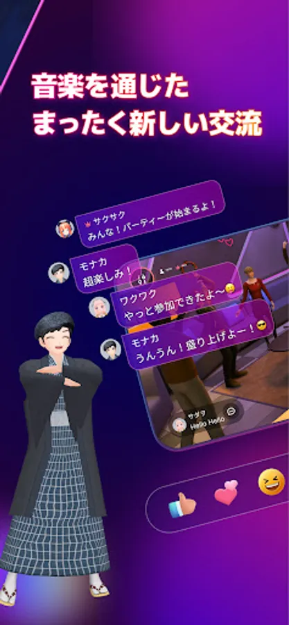 ・Just by using the mobile phone, you can create your avatar and enter the party room to interact and have fun with your friends.