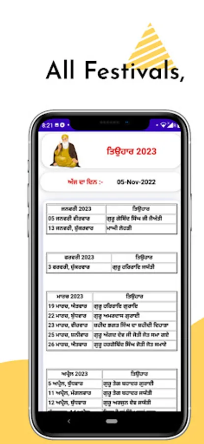 The Nanakshahi Calendar app gives you a lot of information, such as Gurgaddi Divas, Purnmashi, Massya & Sangrand, All Festivals, Punjab Government Holidays, Punjabi Calendar, Sikh Historical Days, Gurpurab Dates, Shhedi Divas