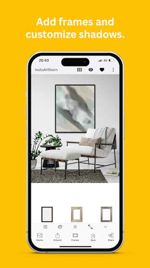 Insitu Art Room, an app to view artwork, posters and/or paintings in different settings. Insitu Art Room gives the user an idea how the artwork looks in a bedroom, a living room, a kitchen or even at a white gallery wall. Both artist, art dealers, art collectors, home stylists and people interested in interior design, have good use of the app. New interior backgrounds are released every month and premium users have unlimited access to all the room displays.