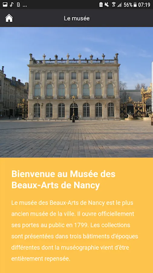 Discover the collections of the Musée des Beaux-Arts, Nancy (France) with this mobile app. Visit the museum through the centuries, its masterpieces, a theme or the look of a writer; follow our agenda, play, explore, test and renew your visit as often as you want! The mobile app of the Museum of Fine Arts Nancy is aimed at all audiences: adults, children and disabled public thanks to its courses LSF and audiodescriptif. Temporary exhibition routes will also be available on this app.