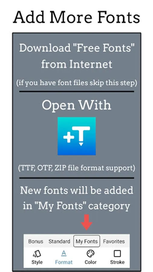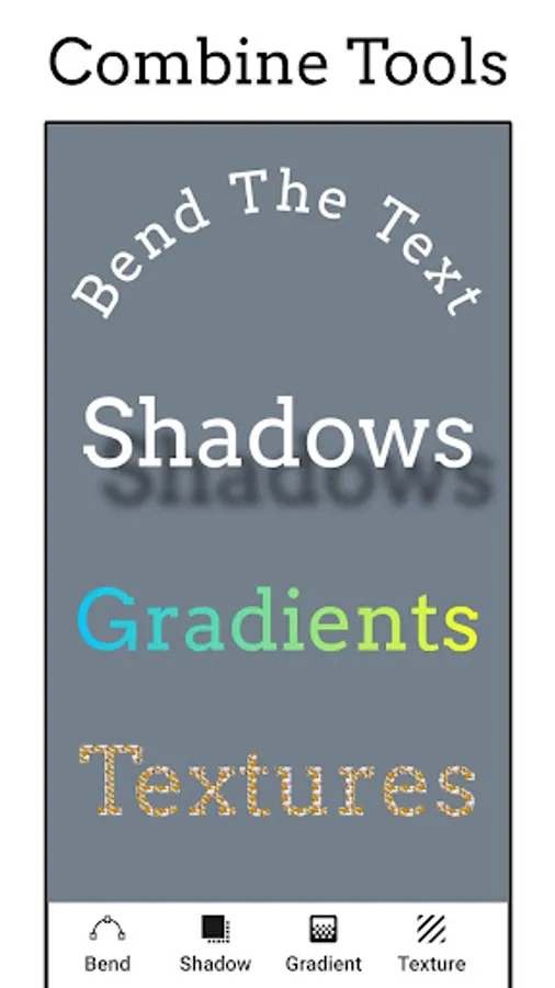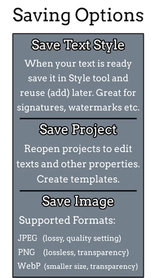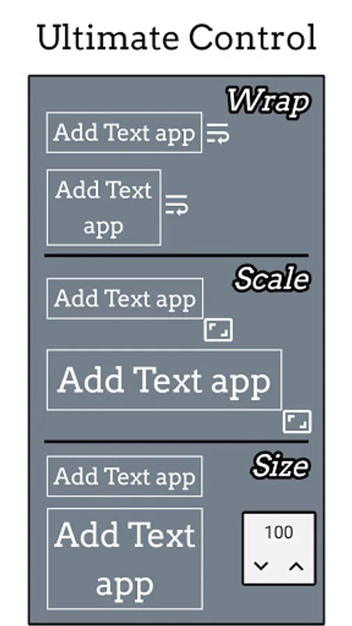Add Text app is the all-in-one tool for text creation. Texts can be added to a photo, gradient, solid color or a transparent background.