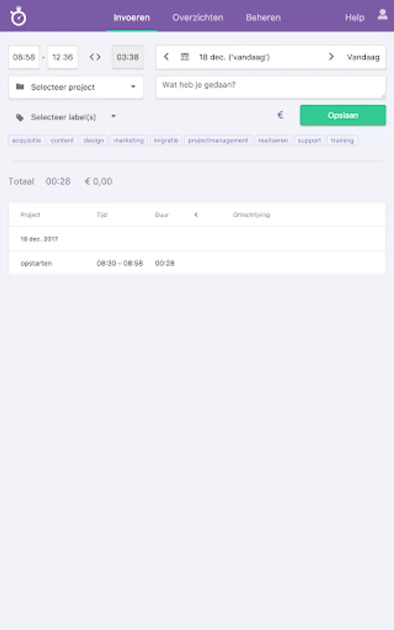 Do you have to keep track of time registration so that you can justify your working hours? Register your hours quickly, easily and smartly with the Nanda app. Seamlessly track your hours on your phone.