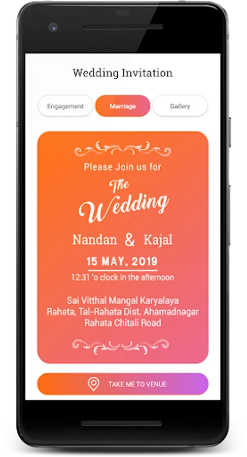 We invite you to share the joy with us as the wedding of Nandan and Kajal takes place on 15th May 2019 at Sai Vithhala Lawns, Rahata. We expect you together with your family!