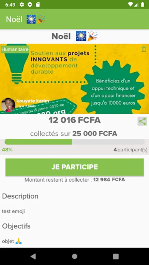collective participation. It aims to help project leaders without financial support who would like their project to see the light of day by setting up a collection of charitable or financial funds over a period of 3 months. This financial participation through "Nandêmin" gives rise to a kind of partners in the project who will in turn receive a share.