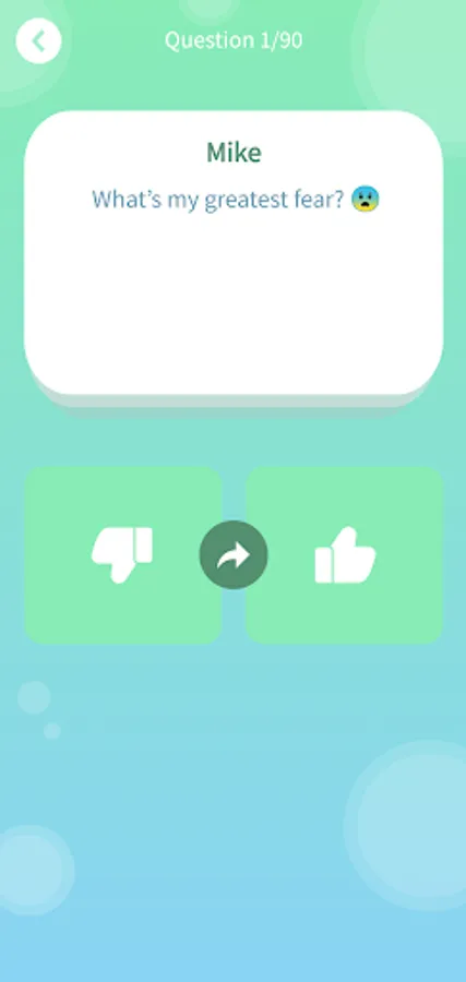 You can take the games for two players trivia quiz as many times as you like. You can take the BFF trivia quiz quiz for each and every friend of yours. The bbf app offers 90 unique questions. This allows you to take the friendship trivia quiz again and again even for the same friend.