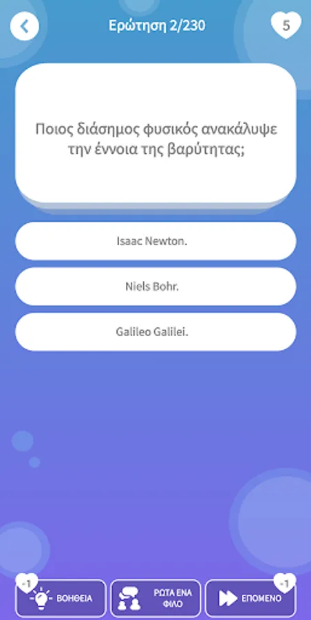 At what level do you think your knowledge of knowledge quiz games or trivia knowledge quizzes is? Play the 2nd app in the series of Greek General Knowledge Quizzes and one of the Greek games with knowledge questions and quizzes, answering 230 NEW fun knowledge questions! Find out how much you know about the world around you. Get ready for a lot of fun and knowledge with this game and knowledge quiz in Greek that includes general knowledge questions and have fun with many categories, such as arts, history, sports, science, geography and more. The new game of the series: Greek General Knowledge Quizzes, with 230 NEW general knowledge quiz questions is waiting for you!