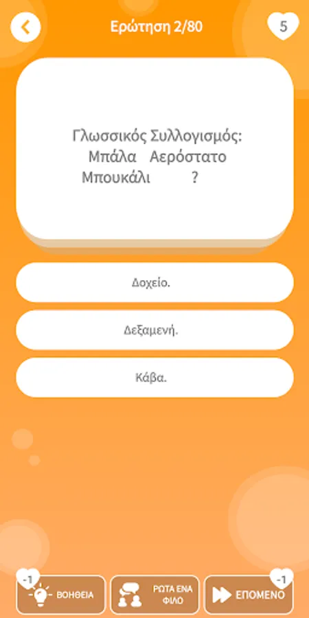 Learn new things while having fun with brain games in Greek and iq tests. Answer correctly and move on to the next question - riddles!