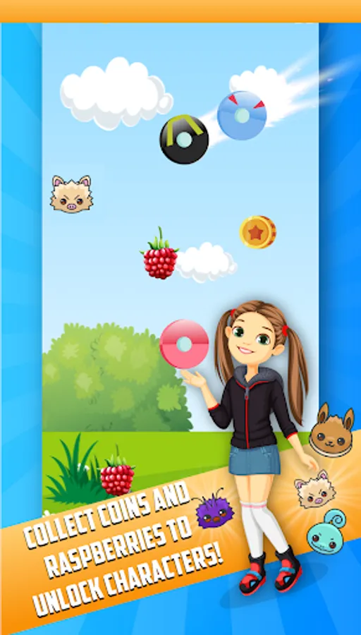 Pokerun is a mini tap to play arcade game where user has to play & control the super-easy-controlled flappy pokemonSter in the endless flappy run with main goal to avoid pokeRedBalls, pokeBlueBalls and pokeBlackBalls and also collect objects. The difficulty of game speed and poke Red/Blue/Black ball speed are increases by time. Also during the endless run, player collects coins, razz berries, mystery boxes and a lot of objects. Player can unlock PokemonSter skins with the collected objects. A high score is always a game goal, so what is yours high score?