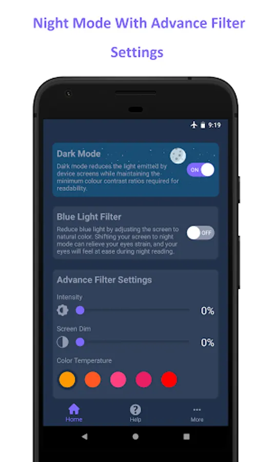 Blue Light Filter - Night Mode and Dark Mode app that may improve your sleep and help you fight insomnia and can also reduce headache.