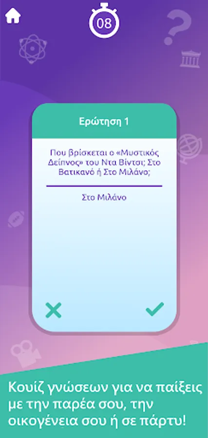 Do you like to play general knowledge board games with trivia quizzes? Do you want to play a Greek Trivia board game with friends, your group or your family? Find It Tell It! Greek Trivia Quiz is one of the best party games and group games that combine trivia and fun with over 1000 trivia questions! From history, geography, sports, art, science questions to TV shows or movie questions - a Greek party group game - Trivia. Just answer the Trivia question before time runs out and win the round!