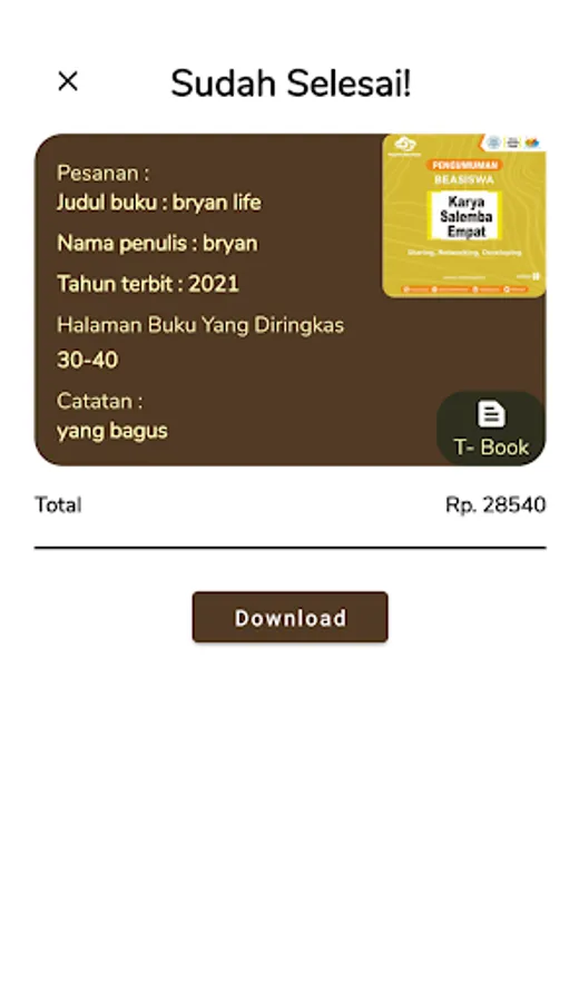 With the tagline "Reading so easy" trying to make you feel at home with the writing provided from the summary of a book. T-books will make you understand writing faster and of course your reading skills will emerge and be honed.