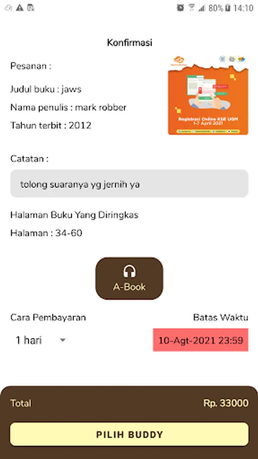 Currently, Fastahu offers 2 types of output, namely A-book and T-book