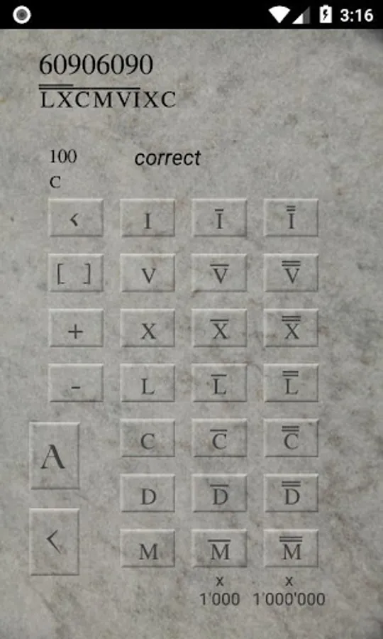 There is also a converter that uses the latin numbers subtractive principle (4 = IV) and, for numbers beyond 3999, the convention: a line above = per one thousand, two lines above = per one million. They can be inserted Arabic or Latin digits.
