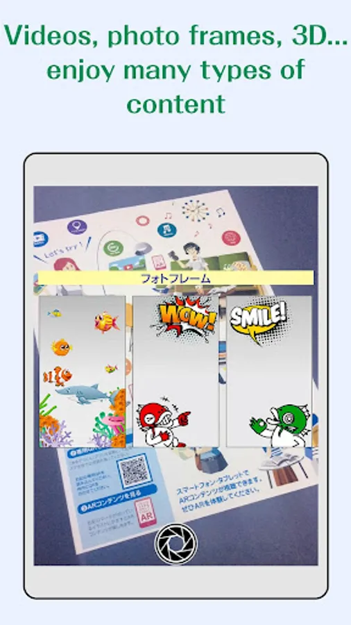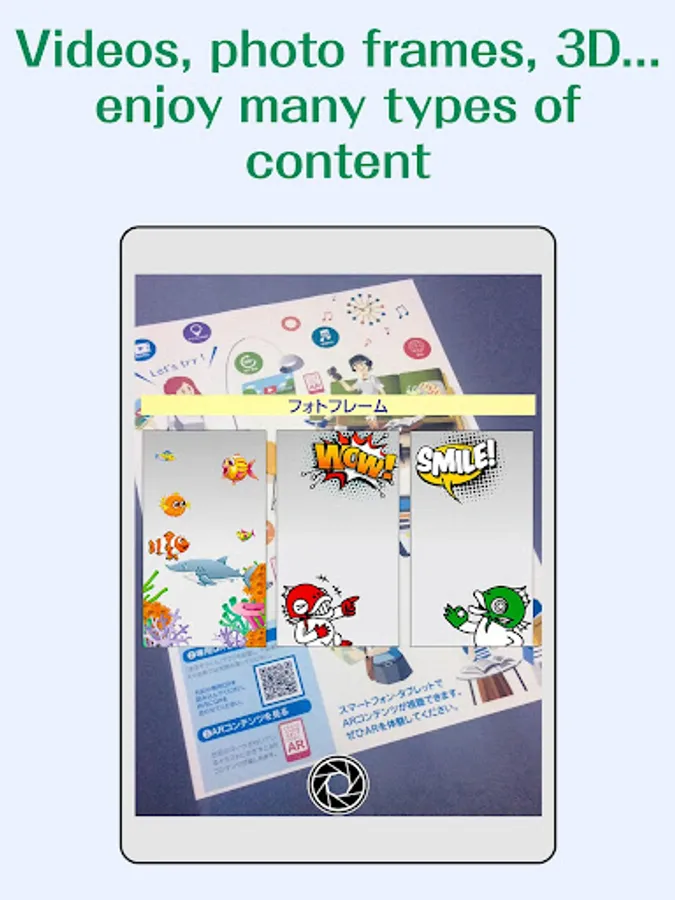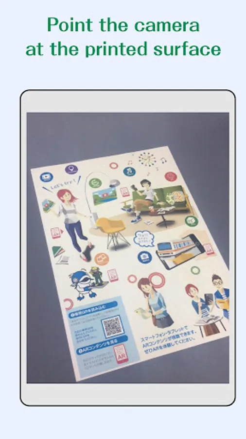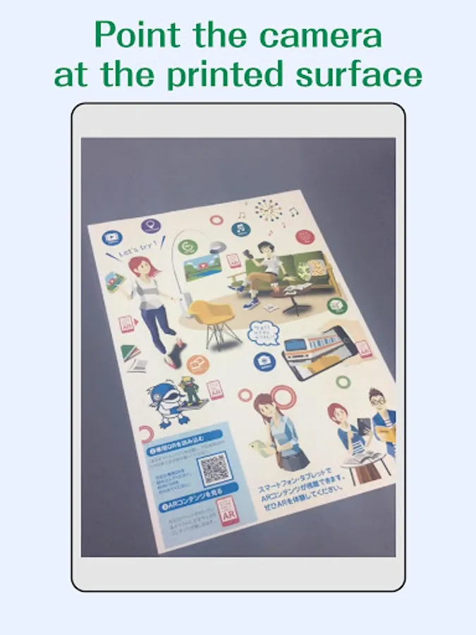 3. Point the camera at illustrations, photos, and other images with the AR mark to enjoy AR.