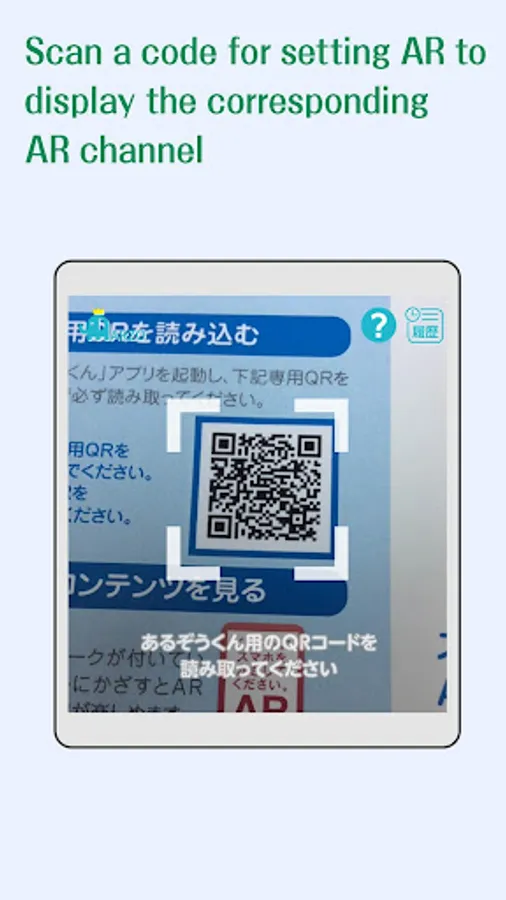 Square Barcode codes to sign up a channel, then scan an AR marker with the camera to access images, audio, video, 360-degree VR view, lottery and stamp book.