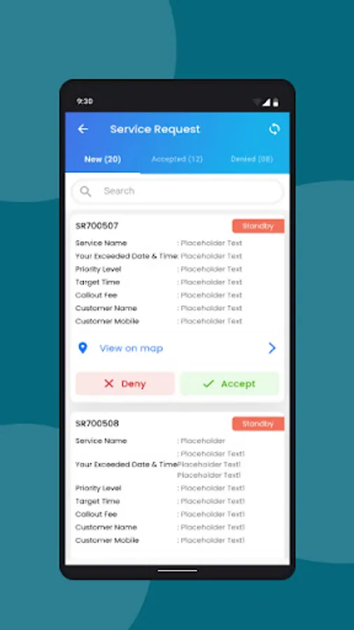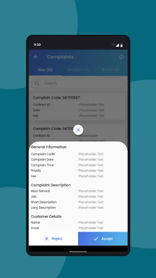 The technician app is used by the field services team to receive and process the request with an option to estimate the pricing for the work requests, submit and get approvals for quotations.