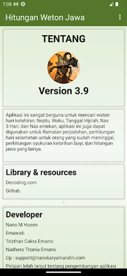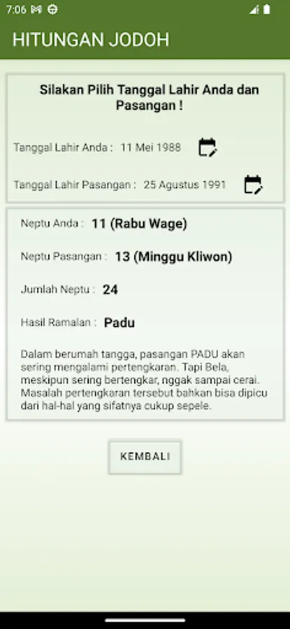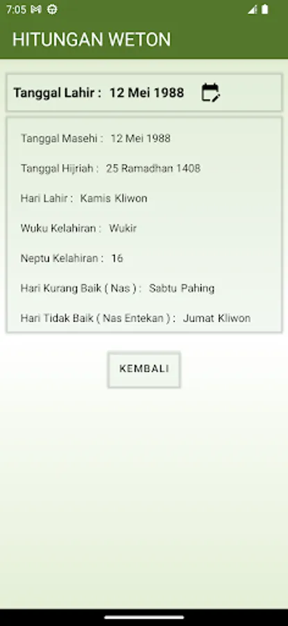 This application is very useful for looking for birth day weton, 3 Day Nas, and Easy reading, this application can also be used for matchmaking predictions, calculating the day of salvation for people who have died, calculating baby thanksgiving, and other Javanese calculations. There is a home screen widget as well.