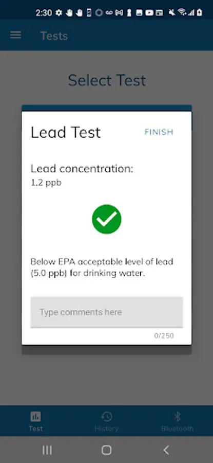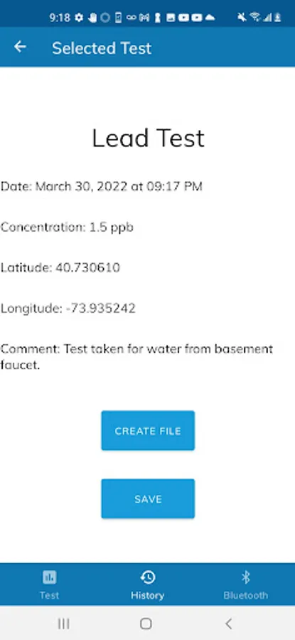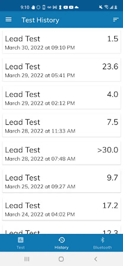 Once lead tests are completed, they are automatically stored within your app so that you can view past results at your pleasure. All stored tests are able to be filtered so that specific past test results can be obtained. Lastly, test results are also able to be saved as text files in your phone's file storage system, and files can be appended so you could store many tests in one file.