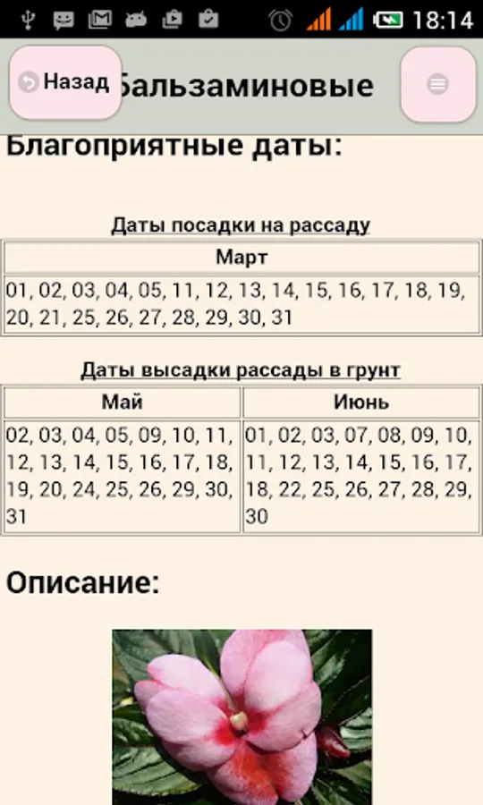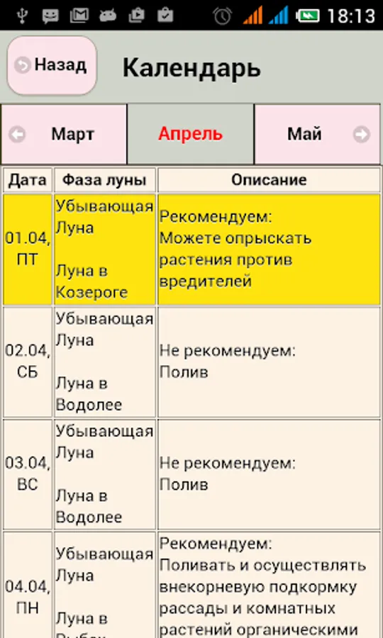 - monthly lunar sowing calendar - for each date, its own recommendation;